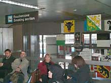 Our flight landed in Zurich and the first thing we noticed was the smell of cigarette smoke. There were NO SMOKING signs everywhere. Yet we smell the cigarette smoke. As we walked with our luggage, we discovered the source of the scent was a room at the junction of several hallways and stairs. See pictures above. We walked for a while and eventually we found our way through the Zurich airport to the car rental area. The clerk offered us a low cost Smart, one of the smallest cars in Europe. We declined the offer and took an Opal-Vectra that would hold both of us and our luggage.